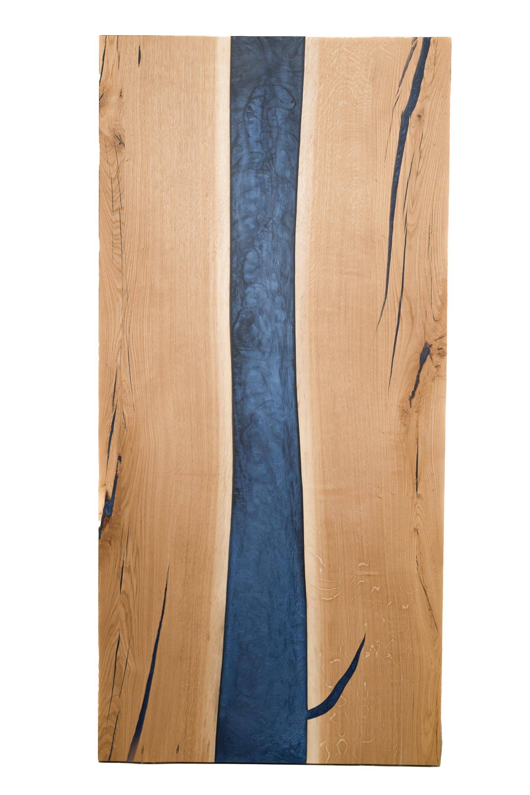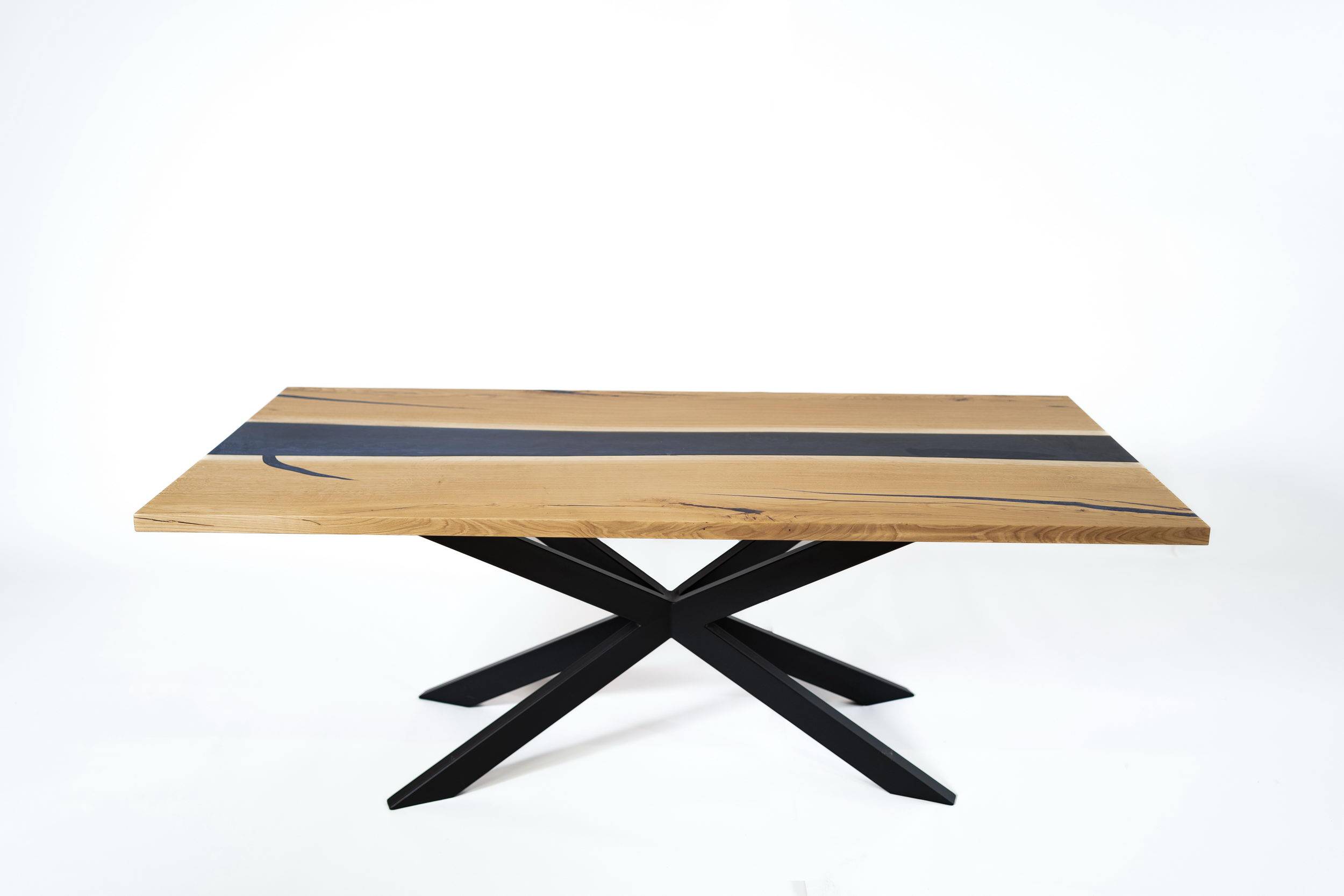 Massiver Esstisch aus Eichholz mit Zusatz von Epoxiharz