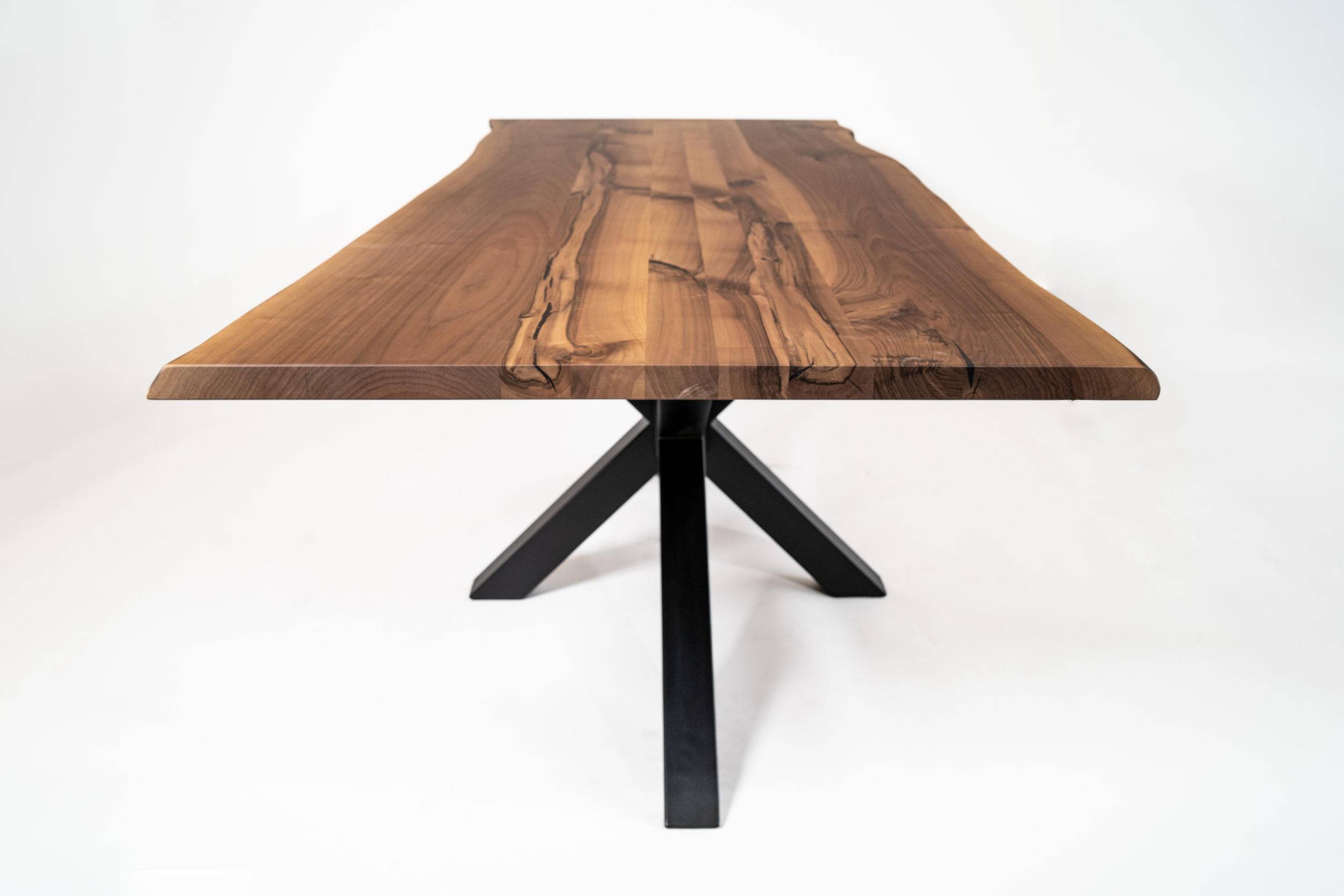 Kvalitetna jedilna miza iz orehovega masivnega lesa. - Obdelana z naravnimi olji ali lakirana. - Velika izbira lesenih ali kovinskih podnožij.